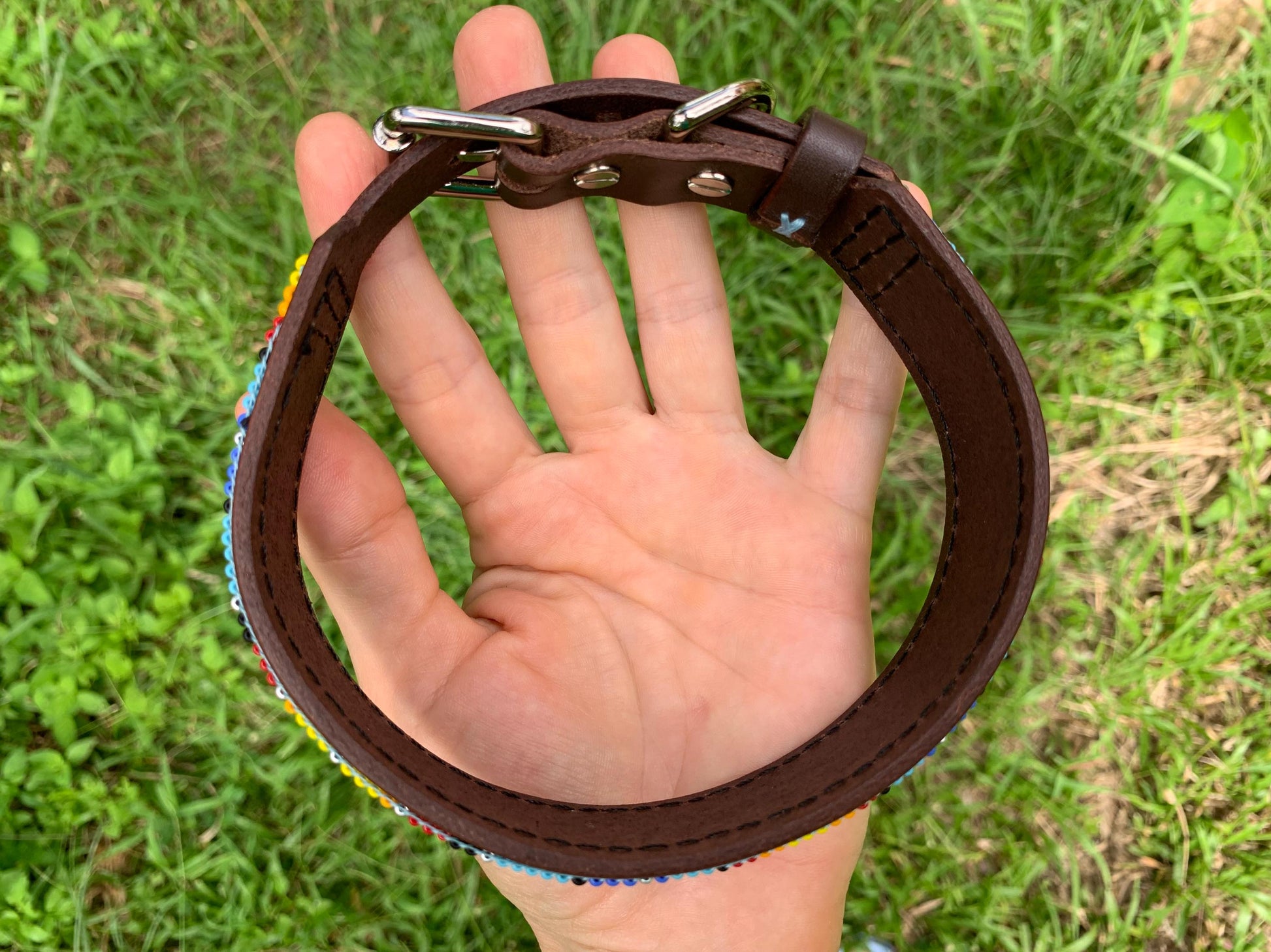 Beaded Leather Dog Collar – Handmade Beaded Dog Collar - Seed beaded dog collar – Italian Leather Pet Collar – Elegant Dog Accessory
