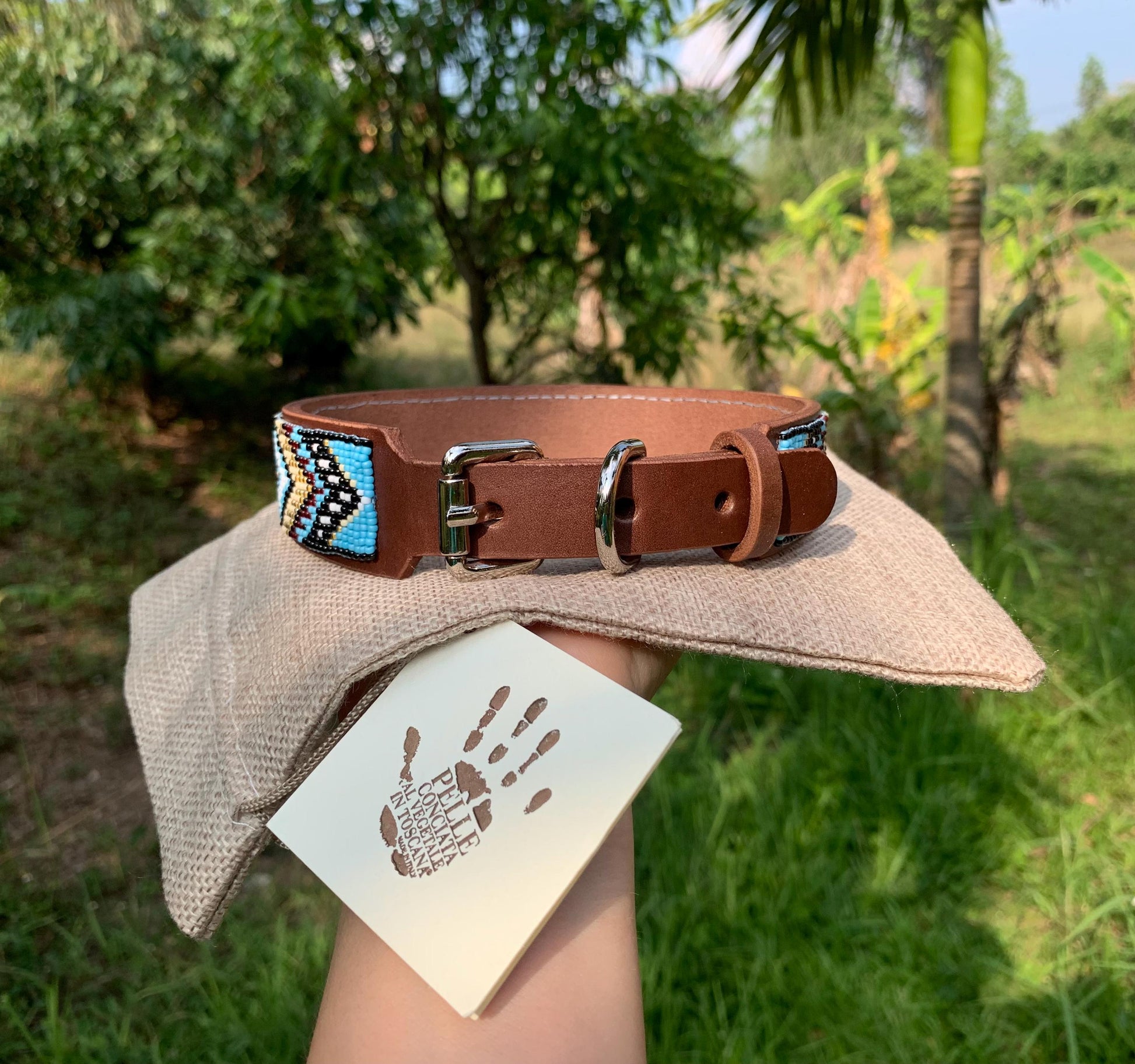 Beaded leather dog collar Unique dog collar Dog collar for boy Dog collar for girl