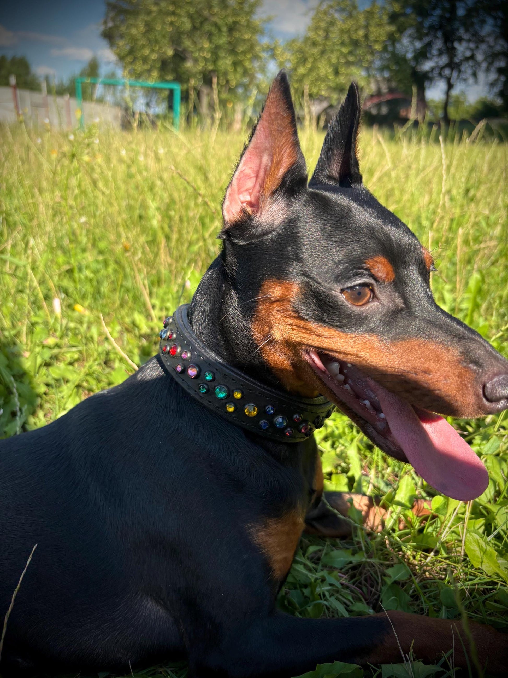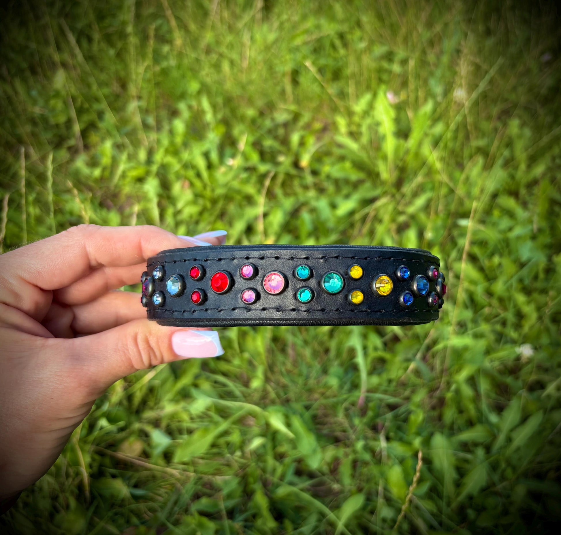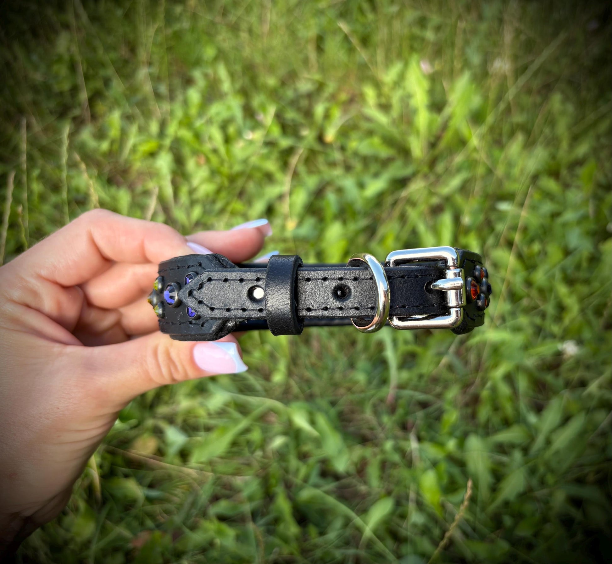 Dog collar made for genuine Italian leather with Czech rhinestones.