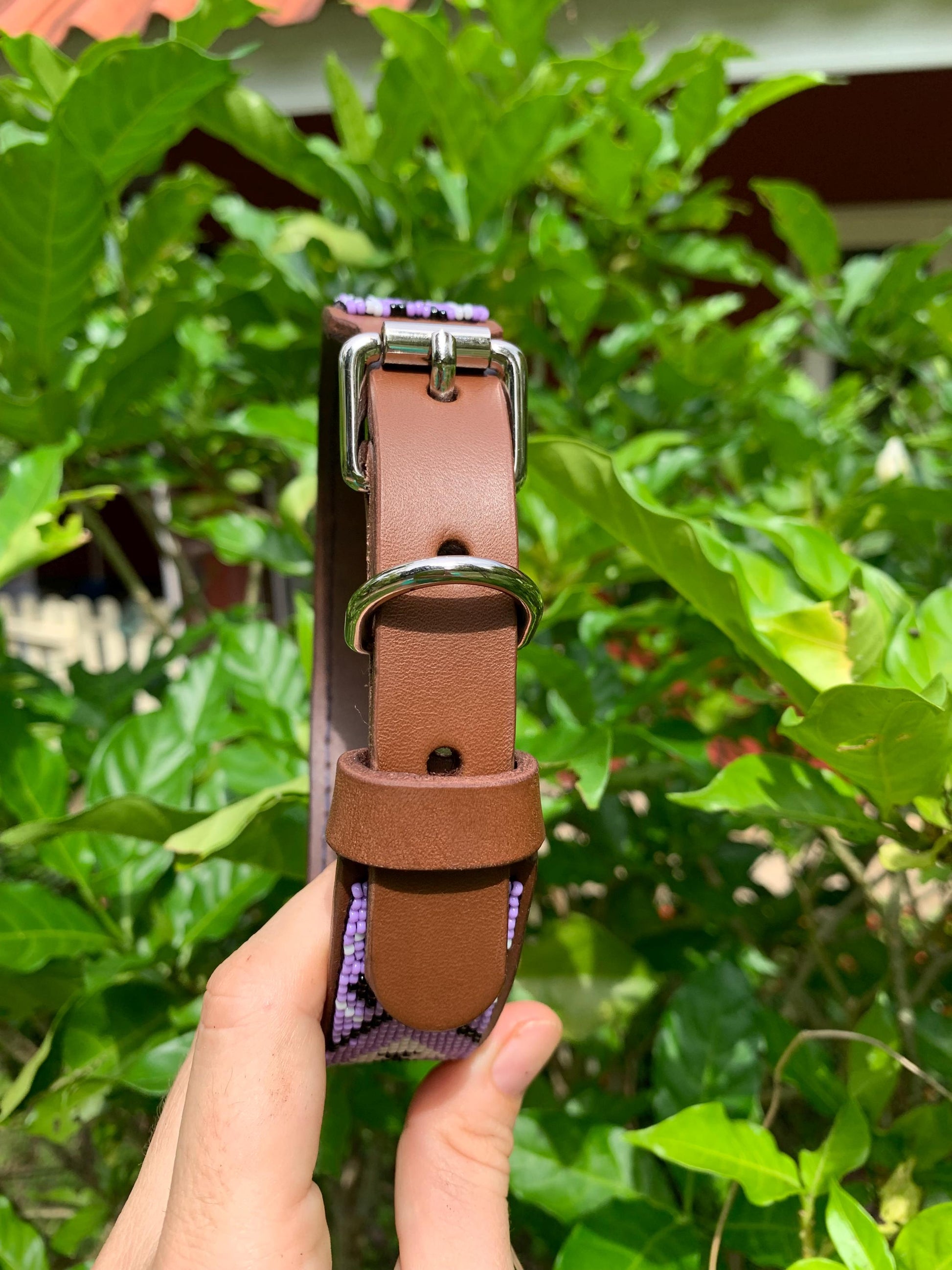 Lilac Leather Dog Collar – Handmade Beaded Dog Collar - Seed beaded dog collar – Italian Leather Pet Collar – Elegant Dog Accessory