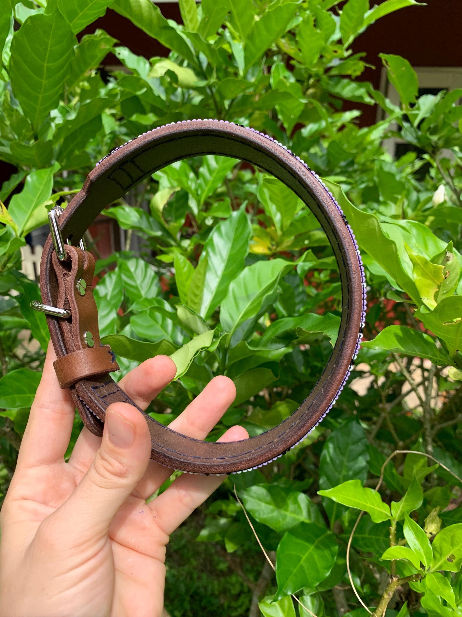 Elevate your pup’s style with our handcrafted leather dog collar, made from premium Italian leather and adorned with high-quality Czech seed beads. This vibrant collar combines durability, elegance, and craftsmanship, making it a perfect accessory for your beloved dog.